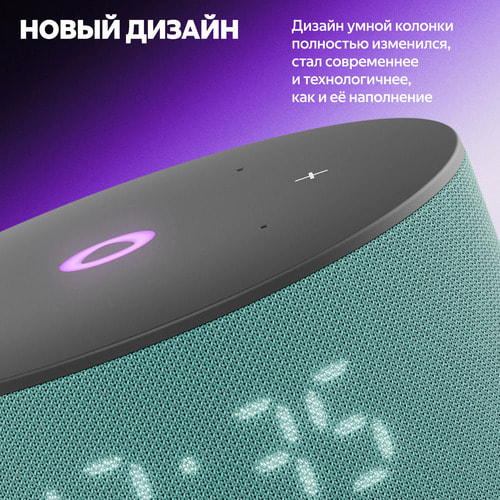 Благодаря более мягкой, цельной и гармоничной форме корпуса Станция Мини 3 отлично смотрится в любом современном интерьере. Цветовая палитра умной колонки тоже обновилась: можно выбрать классические чёрный и серый, а для ценителей акцентов подойдёт пастельный фиолетовый оттенок.